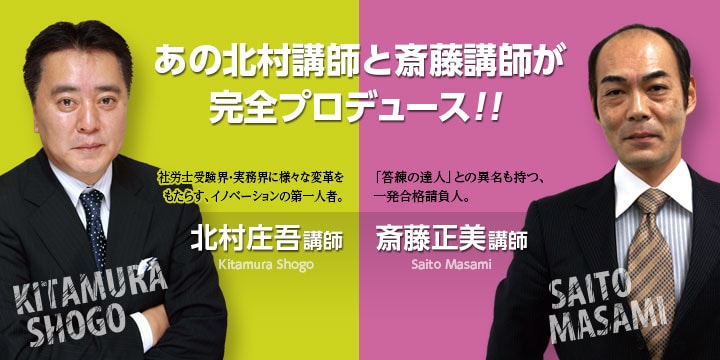 講師陣には「年金博士」としてテレビや雑誌で見かけることも多い北村庄吾講師、「答練の達人」と呼ばれている斎藤正美講師が各講義を担当しております。