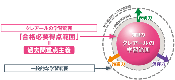 クレアールの社労士通信講座は、社労士試験の出題傾向の高い部分に的を絞ったテキストや過去20年間分の過去問を分析して構成された「分野別完全過去問題集」など、とにかく『合格必要得点範囲』を徹底的に抑えることに特化した通信講座です!