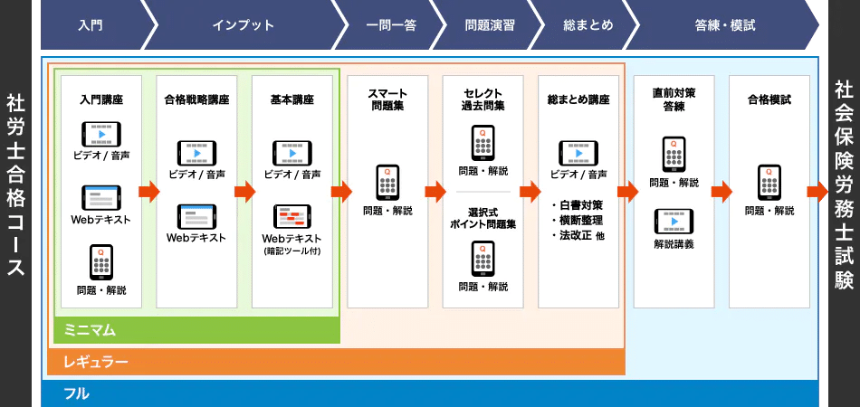 フルコースから「直前対策」「合格模試」「学習Q&Aチケット」を除いたコース - 社労士合格コース ミニマム: