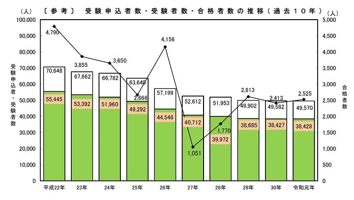 昨年度と比べて合格率は+0.3%アップとやや高くなっておりますが、ここ3年の結果を見ても合格率は6%台で落ち着いてきている印象を受けます。
