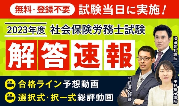 | ■選択式 試験当日 2023年08月27日(日) 18:30 ■択一式 試験翌日 2023年08月28日(月) 18:30 ※動画視聴にはマイページ登録(無料)が必要です |
