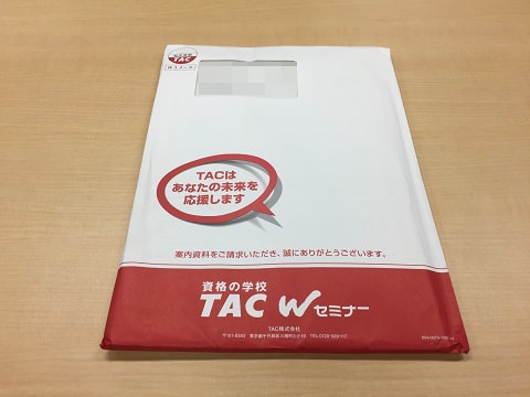 管理人が実際にTACの公式サイトから資料請求の申し込みを行い、入手したのがこちらのパンフレット一式です。