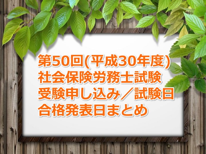 第50回(平成30年度)社労士試験の受験案内(申し込み期間、試験日、合格発表日など)